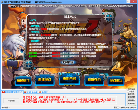 机甲小子2瑾哥辅助不仅提供进度条修改、清理白屏、强力吸铁石修改、自定义修改等功能,还提供了副本翻牌替换首冲礼包特惠功能。