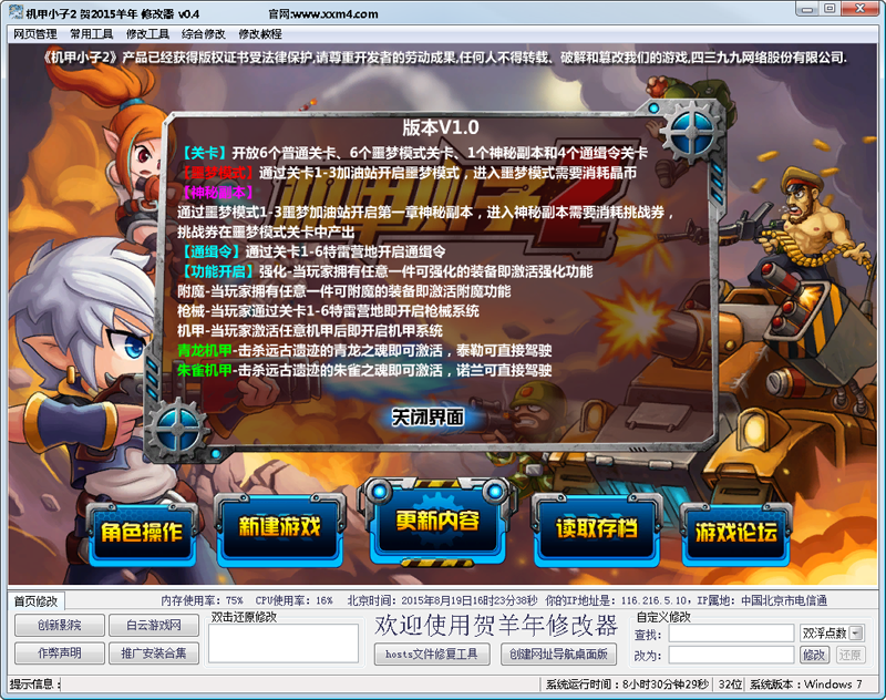 想要拥有人物高跳、定身设计、超高攻击力吗,那就使用机甲小子2贺2015羊年修改器吧,桌面登陆游戏,超多辅助功能相助帮你hi到底!