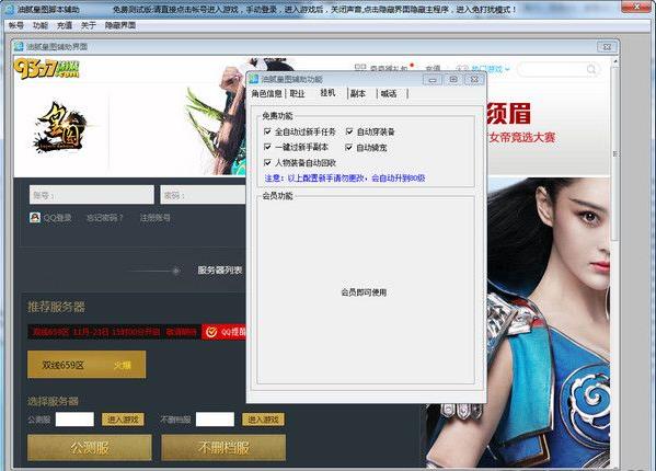 油腻皇图脚本辅助是一款专门针对同名火爆页游《皇图》打造的游戏辅助工具,这款辅助可以为玩家提供了丰富实用的辅助功能,包括全自动过新手任务、一键过新手副本、人物装备自动挥手、自动穿装备、自动骑宠、一键喊话,而且玩家通过该辅助能够一键登录游戏,感受最佳的游戏体验。