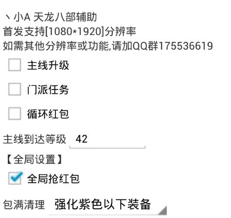 天龙八部3D小A天龙辅助是天龙八部3D手游的一款辅助脚本工具。这款辅助操作简单,为玩家们带来主线升级门派任务、循环抢红包等功能,极大的方便了玩家们进行游戏。赶紧下载体验吧!