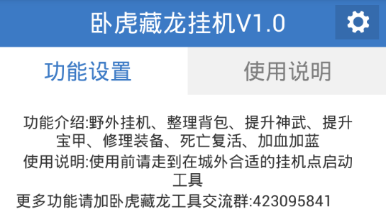 腾牛网为卧虎藏龙的玩家们带来一款挂机辅助下载。这款辅助支持自动野外挂机、整理背包、提升神武、提升宝甲等功能,超级好用!喜欢的朋友们不要错过啦!