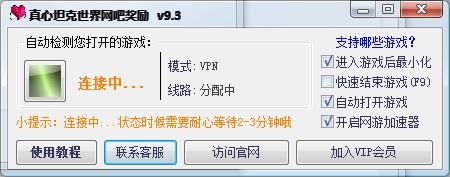 真心坦克世界网吧奖励是一款WOT坦克世界网吧特权获取软件,这款软件可以通过代理IP网吧形式,让用户在家就能享受网吧奖励,真心坦克世界网吧奖励软件含免费线路,免费测试,电信网通不卡,不仅可以获得网吧奖励,还有游戏加速功能,实测情况游戏延迟50内,欢迎下载。