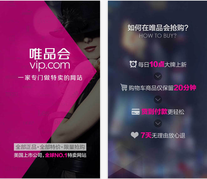 唯品会,一家专门做特卖的网站,专业买手把脉潮流热点,轻松打造女神范&有型男,你手中的网购神器!
