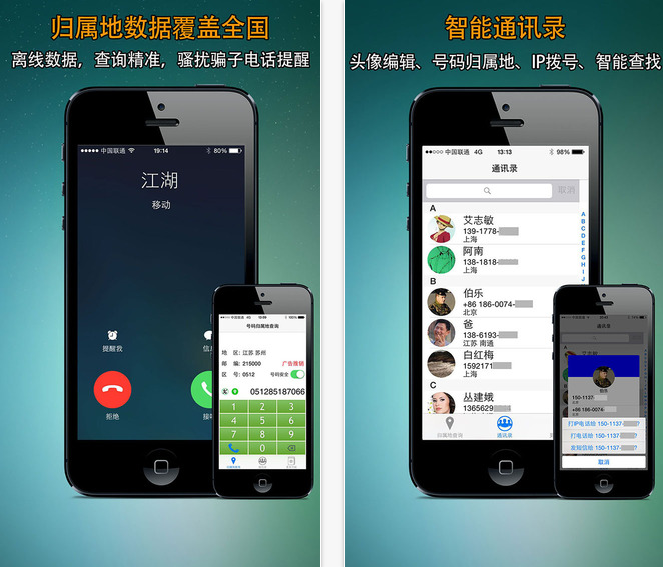 智能通讯录,头像编辑、号码归属地、IP拨号、智能查找
