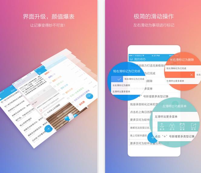 闪记云记事ios版是一款闪记笔记记事针对ios平台的闪记手机版APP,新版支持云账号功能,一键云同步,数据永不丢失,闪记ios版支持一键置顶、任意拖动排序、四向滑动、秒开提醒、手写涂鸦、语音转文字、语音记事、一键拍照、富文本、日程规划、待办事宜、云备份、密码锁等等强大好用的功能,欢迎下载体验!