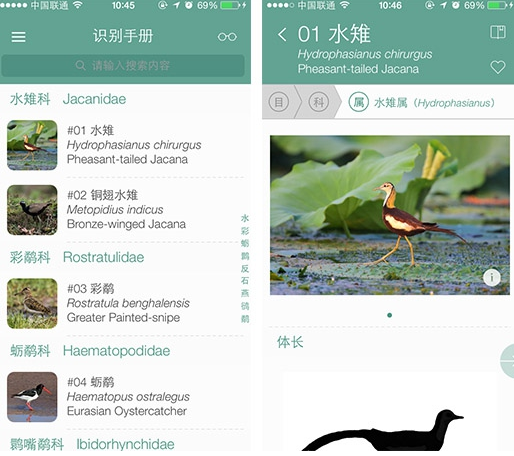中国鸻鹬识别是北京观鸟会(Beijing Bird Watching Society)继北京猛禽识别后,最新发布的一款观鸟工具类应用。本应用依据中国鸟类分类与分布名录(第二版),收录了中国地区的84种鸻形目鸟类,提供了信息查询、快速检索以及图片展示等功能,以方便观鸟爱好者通过iPhone和iPad查看中国地区的鸻形目鸟类信息。