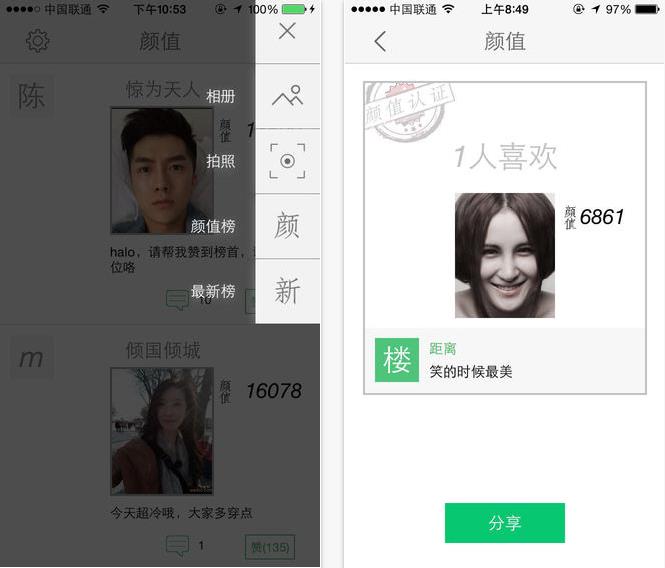 并且你的气质也会影响你的颜值,气质包括你的微笑,肤色,年龄等综合信息计算。快来找你的小伙伴比一比谁的颜值最高!!
