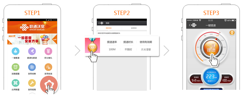 - 在接入北京联通家庭宽带的wifi网络环境下,打开联通沃宽点击一键提速,即可将下行带宽最高提升至100M。