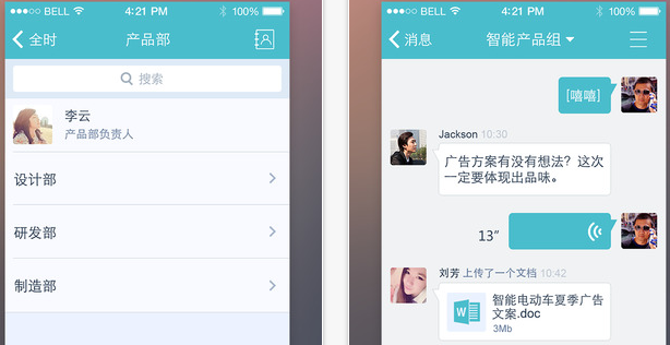 1.能发起一对一、多人、讨论组讨论,分享文字、语音消息、图片、视频、以及文档。