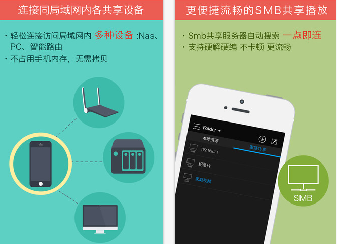 4. 局域网播放功能:可访问威动服务器、Windows共享服务、智能路由、NAS等设备。