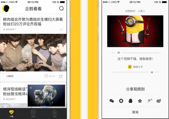 企鹅看看是腾讯公司为ios用户打造的一款个性化视频应用,用户可以通过本应用搜索最新的精彩视频,并可截图分享与好友互动,还有兴趣视频推荐,保证符合你的胃口。