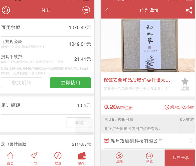 而用户只需通过微博、微信、人人等社交媒体转发广告,获得粉丝或好友点击即可获得收益。操作极其简单方便。