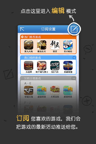 您可以根据个人喜好订阅喜欢的游戏,当这些游戏有新活动推出的时候,我们会在第一时间提醒您!