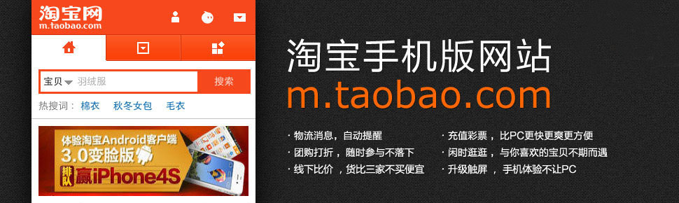 手机用户无需下载客户端,即可直接登录//m.taobao.com/访问手机淘宝网,在星空外围足球网(点击应用即可将手机淘宝的所有应用功能一览无余,带给你更加轻松的购物体验。