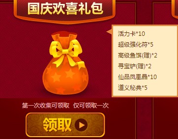 第一次收集可领取国庆欢喜礼包 仅可领取一次
