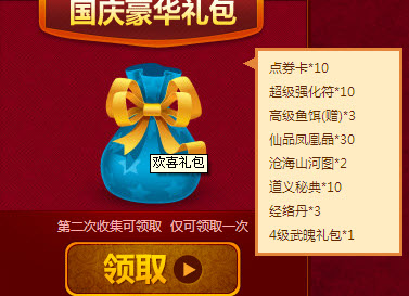 第二次收集可领取国庆豪华礼包仅可领取一次