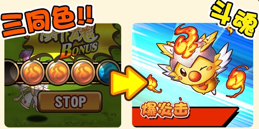 拉霸时出现3颗以上和宠物属性一样的能量球,宠物就会释放超必杀!斗魂技!!