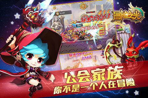 《冒险之光》是一款Q萌横版过关动作手游。游戏以2D横向卷轴方式呈现神秘的冒险世界,画面可爱活跃、形象个性鲜明。游戏中角色可以穿戴多样化的装备、使用自由组合的技能进行战斗历险,并可自由的跳跃、攀爬甚至飞翔。上百精灵宠物与玩家并肩作战,超过50种时装、30种翅膀可供个性装扮。在这里每一个玩家都是独一无二的主角。