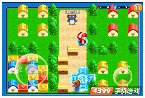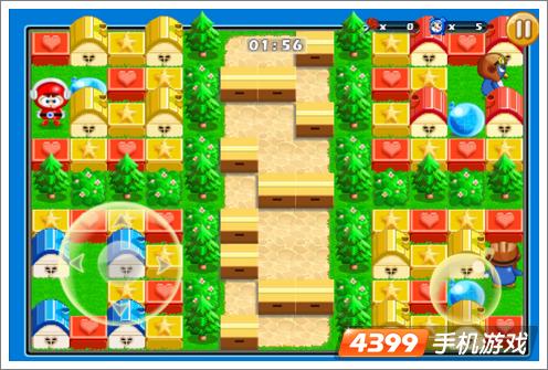 游戏玩法也没有多大区别,小时候玩过泡泡堂的小伙伴小编相信不要两分钟你就能找回感觉,轻松上手。游戏目的就是用炸弹清除周边箱子、木块等障碍物,打通到达敌人所在区域的道路,想方设法用泡泡炸死敌人,不过同时也要小心自己被炸到,那就得不偿失了。