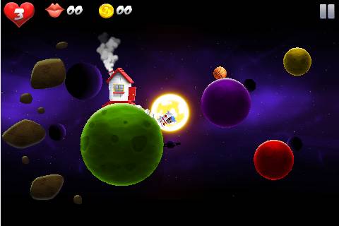 玩家扮演一名宇航员,在星球间行走,利用空间失重和星球重力的转换来轻松实现跳跃、行走和短暂的飞行,收集金币红心等道具,拯救被宇宙怪物掳走的美女,帮助她们乘坐飞船逃跑,成为她们的英雄!
