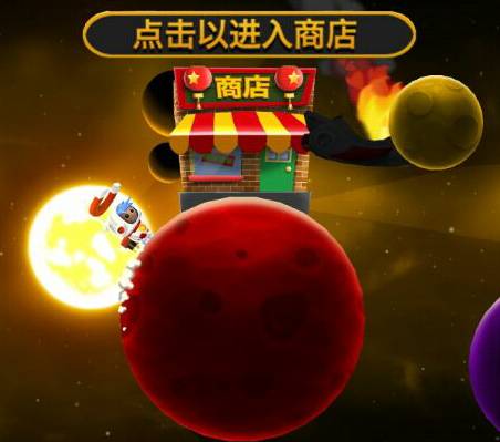 在起始星球的对面的星球上有一个篮球,我们跳过去碰一下会把篮球给击飞,并且获得1金币,发现了吧,这是个绝世BUG哦,篮球不会消失,可以一直撞,撞一下就有1金币啊有木有,能无限刷金币刷到爆啊有木有,(前提是你有那个耐心去撞吧,因为篮球会弹跳,估计撞它个200下后会发誓再也不碰篮球了)