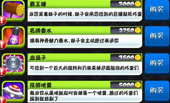 偷偷了解到商店里面的杀敌道具购买了后需要吃到天降箱子才有几率出现购买的杀敌道具,属性道具里面有不错的道具,比如那个起始生命+3道具,就是首选,也是,毕竟不是魂斗罗,多命多机会啊,不过那玩意价格也不菲,需要5500金币,这就是一个积累过程了,可以把初始目标定为先购买起始生命+3道具和最便宜的杀敌道具血滴子,如果能购买了这2道具肯定是如虎添翼,终极道具太空跑车到底会有什么效果呢,真期待。