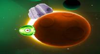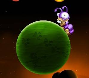 单一的气球并不可怕,但是当气球把人推向太空怪物的位置时就让人纠结了,那可以用帮凶来形容,是的,太空中并不是风平浪静的,有外星人的存在,前方就出现第一种怪物,经过我的未知能力分析得出:这是绿胶怪,这种坏蛋不会动,只是固定在吸附的星球上,只要不碰到它,就不会被攻击。