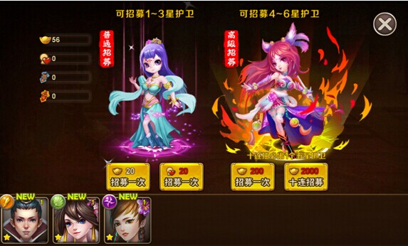 护卫通过酒馆招募获得,玩家每天可以免费进行低级招募若干次,高级招募一次。玩家可以付费进行多次