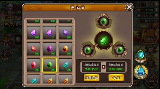 2. 三颗同属性同阶宝石可以合成一个高一级的该属性宝石。