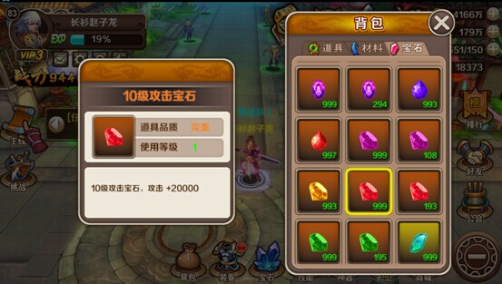 3.同级同种宝石可叠加,单组叠加上限为999个。