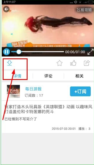 2、点击视频下方的下载箭头,点击下载,如下图所示;