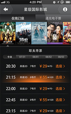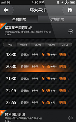 影院放映讯息,票价情况随时掌握