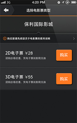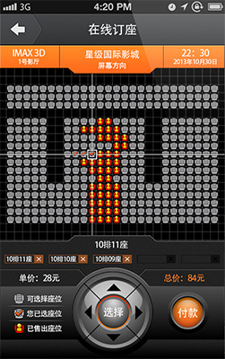 多种支付——支持支付宝、财付通、银联、微信、卖座卡等多种支付方式。