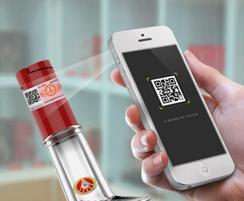 在酒瓶上找到带有二维码的防伪标识;
