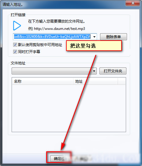 5、勾选“默认使用剪贴板中可用地址”,播放器自动使用第3步中复制的地址