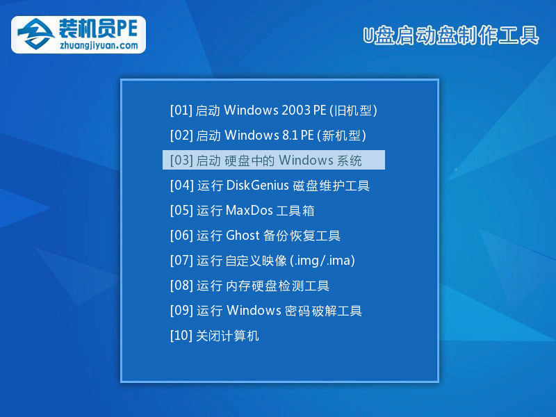 3、pc启动时选择装机员本地模式即可启动装机员U盘启动了。