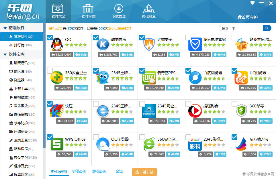 现在各大平台都推出了自己的软件管理工具,今天小编为大家带来的是这款乐网软件管家,乐网软件管家是一款专业实用的软件管理工具,这款软件管家拥有海量软件和游戏,包括学习办公、影音娱乐、系统维护、游戏以及相关补丁等,支持实时更新,同时还有软件卸载和系统优化功能,帮助你更快捷的管理电脑中的所有软件。