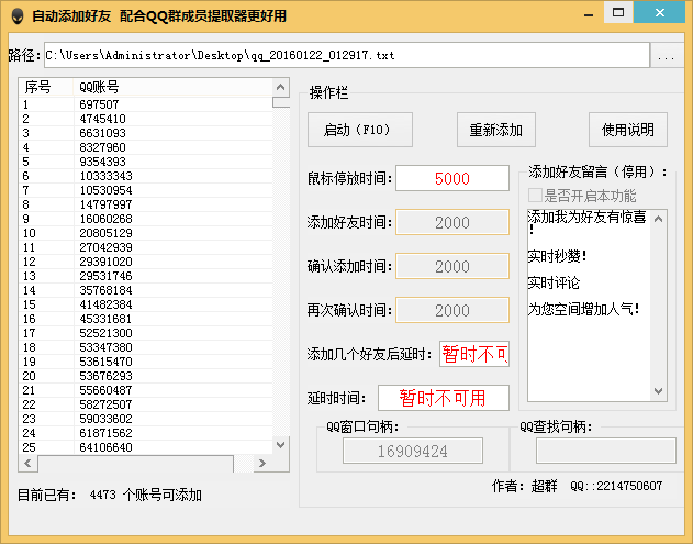 QQ自动添加好友软件使用说明: