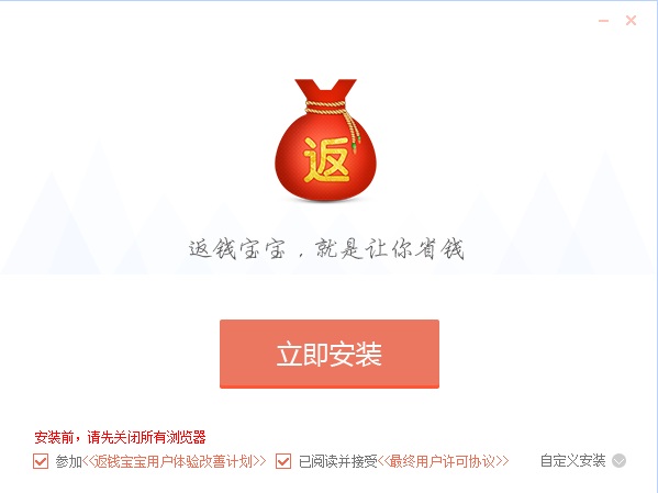 返钱宝宝是专为网购用户打造的购物返利插件。返钱宝宝是基于网页辅助的浏览器插件。用户需要在浏览器上安装返钱宝宝返利插件,用户在网页在线购物时候,返钱宝宝就会进行返利,而且支持提现,且不向用户收取一分钱!最轻便的购物返利工具!需要的朋友可以下载体验一下。