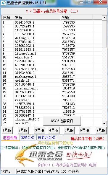 永恒迅雷会员搜索器是一个搜索迅雷帐号软件,迅雷帐号源自网络。软件工作时将会搜索各个论坛的迅雷帐号密码,后再显示在软件中。