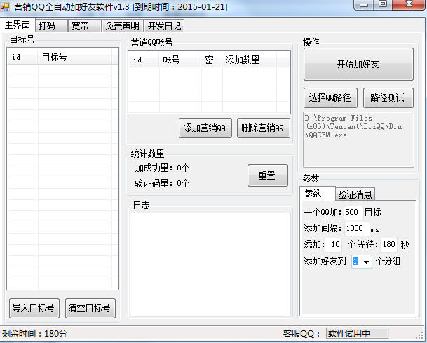 (3)可以将普通QQ号的好友,批时导入到营销QQ中,但一个月仅参导五次;