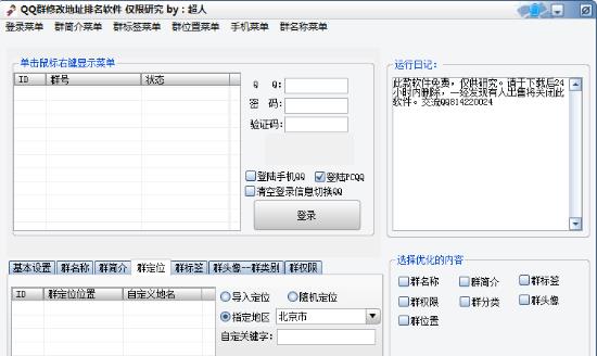QQ群修改地址排名软件是一款帮助你的QQ群进行排名优化的软件,如果你有很多的QQ群,又不想去一个个管理,不如下载QQ群排名优化软件,可以刷新自定义地点,可修改群名称,群标签等内容,让你的QQ群有个好排名。