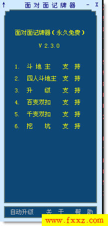 软件具备自动升级功能,如果游戏升级,软件会自动升级到对应的新版本。对升级、双扣等游戏支持还在开发中,一旦完成,软件会自动升级。