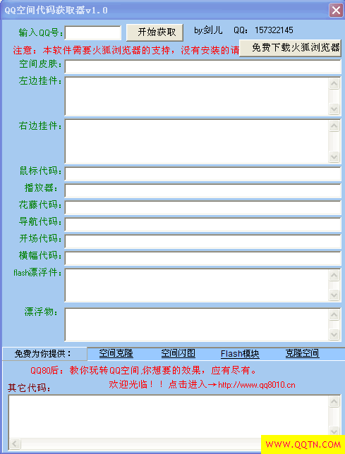 QQ空间代码获取器,可以将你看到别人好的QQ空间的代码显示出来.十分好用