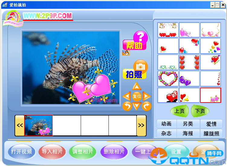爱拍就拍大头贴是一款免费的大头贴制作工具,爱拍就拍大头贴能够帮助你快速制作大头贴,有了这款软件,只要你的电脑上装了摄像头,就能随时随地进行大头贴制作了,爱怎么拍就怎么拍,不用花钱也不用排队跟人挤,即使没有摄像头也能导入数码照片来进行快速大头贴制作哦。