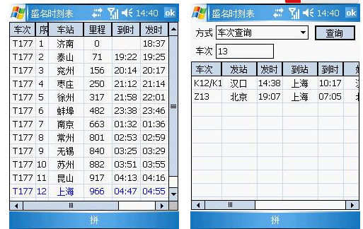 《盛名列车时刻表WM版》是有史以来最好的列车时刻表WM版(Windows Mobile)软件,具有以下特点:
