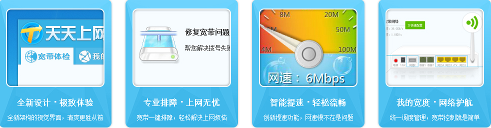 4.高效、简单的上网记录查询、宽带密码 修改和常用网站推荐等自助 服务。