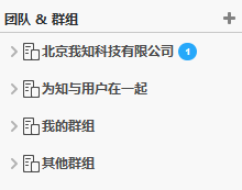 企业群组和个人群组均显示在“团队&群组”下,如下图所示,前两个是我所创建或加入的企业团队,展开可看到团队下的群组。“我的群组”是指我创建的个人群组,右键可对我的群组进行管理;“其他群组”是指我加入的个人群组。
