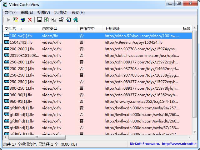 VideoCacheView 的作用就是帮你列出你浏览器缓存目录里的所有视频文件你可以对其进行一些基本的操作,比如播放、移动、查找、复制下载地址、查看属性等等。