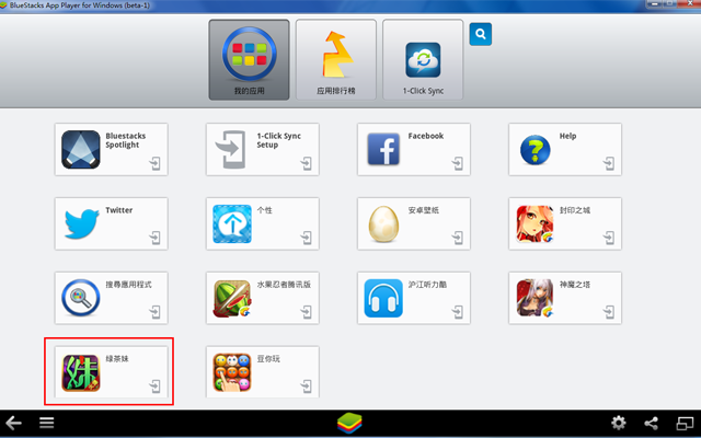 第四步:成功后,打开安卓模拟器BlueStacks,如下图中所示,点图标,就可以电脑上运行《绿茶妹》这款游戏啦!